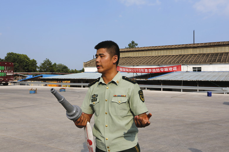 下午4點(diǎn),掛雞平臺(tái)附近的水泥地板,酷熱難耐。年輕的中隊(duì)長(zhǎng)劉進(jìn)勇滿臉是汗,綠色的軍裝早已濕透。