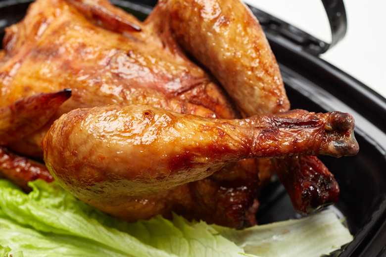 一大早,到菜市場(chǎng)趕早市的人們聞著烤雞香味,紛紛來到店內(nèi),得知烤雞還未烤制好,立馬預(yù)定。
