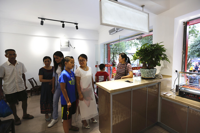 不光店內(nèi),店外的桌子旁,前來咨詢、購買的人也絡(luò)繹不絕。