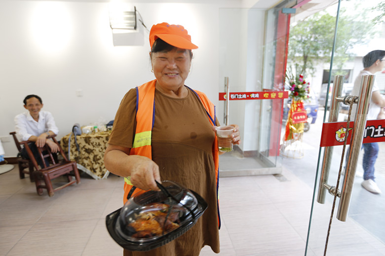 這時(shí),店內(nèi)進(jìn)來了一位環(huán)衛(wèi)工阿姨,阿姨說“我家孫子嘴可挑了。他還沒吃過烤雞,給他買一只。如果好吃,我下次再來買。”
