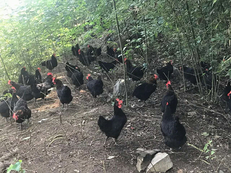 一群群的石門土雞咯咯咯噠,在樹林里勤奮地覓食,不停地奔走。