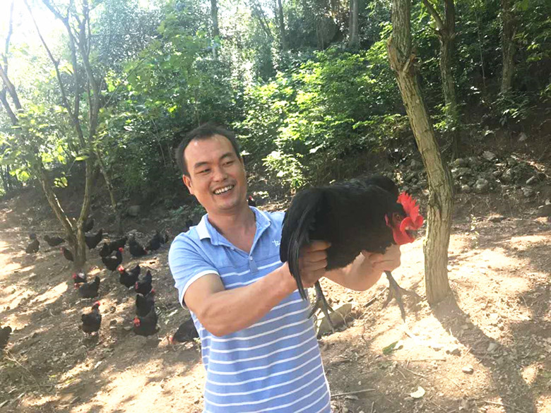 張林費(fèi)了九牛二虎之力,才抓到一只石門土雞,笑著向客人介紹:你看,雞冠紅艷艷,羽毛黑黝黝,雞爪硬尖尖!