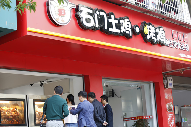 蕢鶯春女士一行來到石門土雞烤雞石門一中烤雞店觀看石門土雞烤雞的烤制過程