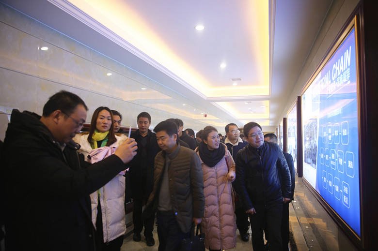 在產業園多媒體會議室,他們觀看了湘佳牧業宣傳片《湘佳?立志做好雞》,全方位了解了湘佳牧業的全產業鏈和“三十年磨一劍、三十年只做雞”的職業操守、“贏在品質,勝在品牌”的品牌理念和“從內打破,方能新生”的企業核心價值觀。