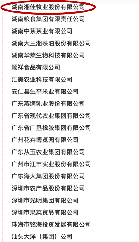近日,國家農業農村部公布第八次檢測合格農業產業化國家重點龍頭企業名單,全國1095家農業產業化國家重點龍頭企業檢測合格,湖南湘佳牧業股份有限公司再登榜單。