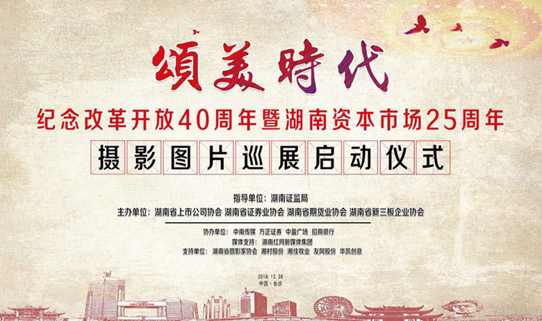 12月28日,“頌美時代”紀念改革開放40周年暨湖南資本市場25周年攝影圖片巡展啟動儀式在長沙泊富國際廣場拉開帷幕,湘佳牧業董事長喻自文作為特邀嘉賓出席了啟動式,并為獲獎作者頒獎。
