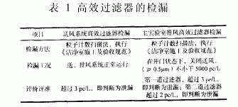 在?2004?年?8?月?3?日發(fā)布的《?生物安全實驗室建筑技術(shù)規(guī)范》GB50346-2004(?以下簡稱《?規(guī)范》)?中要求:“?5.3.2?三級和四級生物安全實驗室的排風(fēng)必須經(jīng)過高效過濾器過濾后排放,?高效過濾器的效率不應(yīng)低于現(xiàn)行標(biāo)準(zhǔn)《?高效空氣過濾器》GB13554?中的?B?類[2]”。《?規(guī)范》條文說明“?5.3.8?由于排風(fēng)是安全措施的心,??:如果排風(fēng)過濾器有漏泄,?就不能把住這道關(guān),?不僅排風(fēng)形同虛設(shè),?而且更加危險,?以致于此安全實驗室也形同虛設(shè)了。所以,?如果不能確認(rèn)排風(fēng)過濾器不漏,?則此實驗室不能啟用[2]。……”可見對排風(fēng)高效過濾器的檢漏的重要性,?這是關(guān)系到實驗室能否啟用的關(guān)鍵。所以在《?規(guī)范》?中,?第?101.6?條規(guī)定“?高效過濾器應(yīng)按表???:10.1.6?的要求進(jìn)行檢漏和評價[2]。”